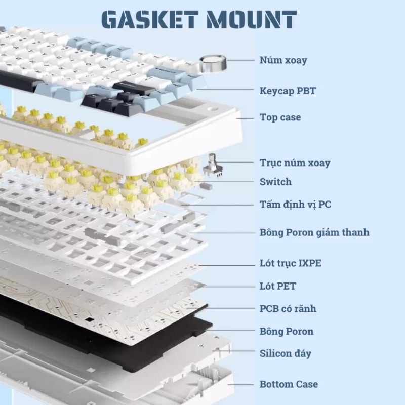 Keycaps: PBT Doubleshot chuẩn Cherry.
