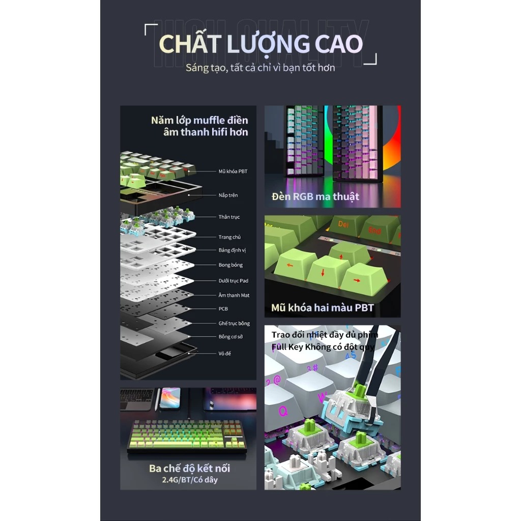 Bàn phím cơ không dây Leaven K88 - 3 mode kết nối - Led RGB - Full foam - Hỗ trợ app tùy chỉnh
